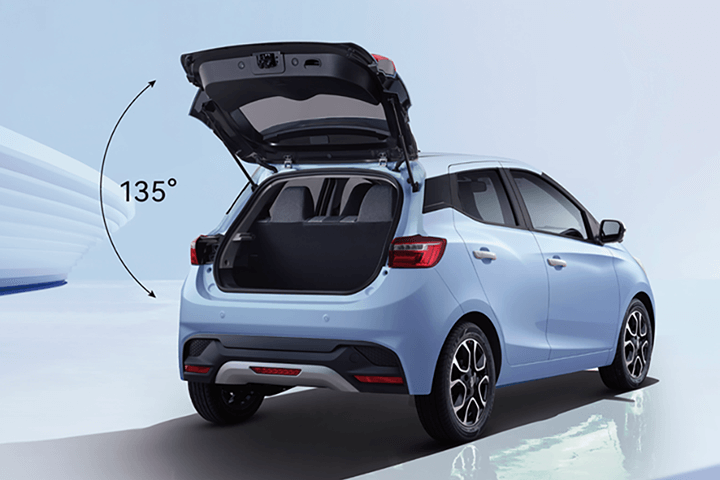 135°大开口后备箱,净深23cm,后排座椅放倒后可获得1000L储物空间,同级独有备胎专属储放空间。